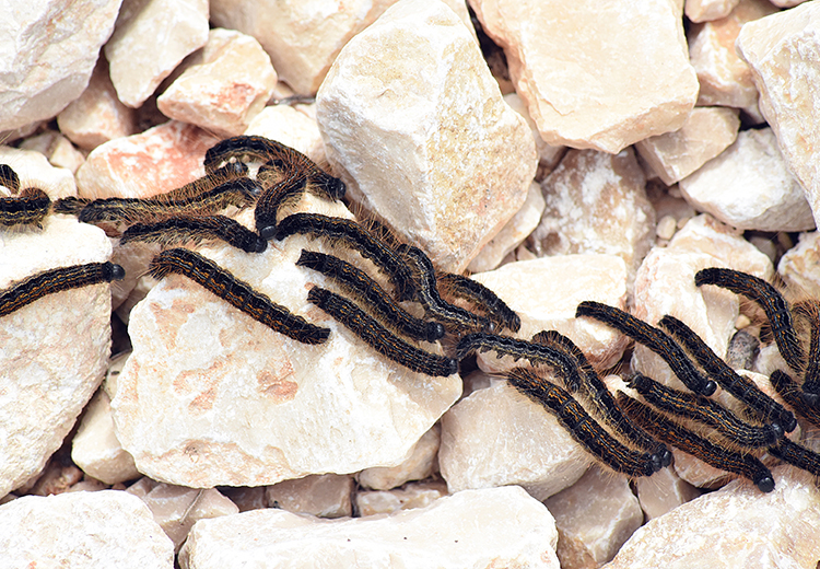 Quando la stagione si fa più calda, le larve abbandonano il nido e iniziano a spostarsi da un albero all’altro per cibarsi.
